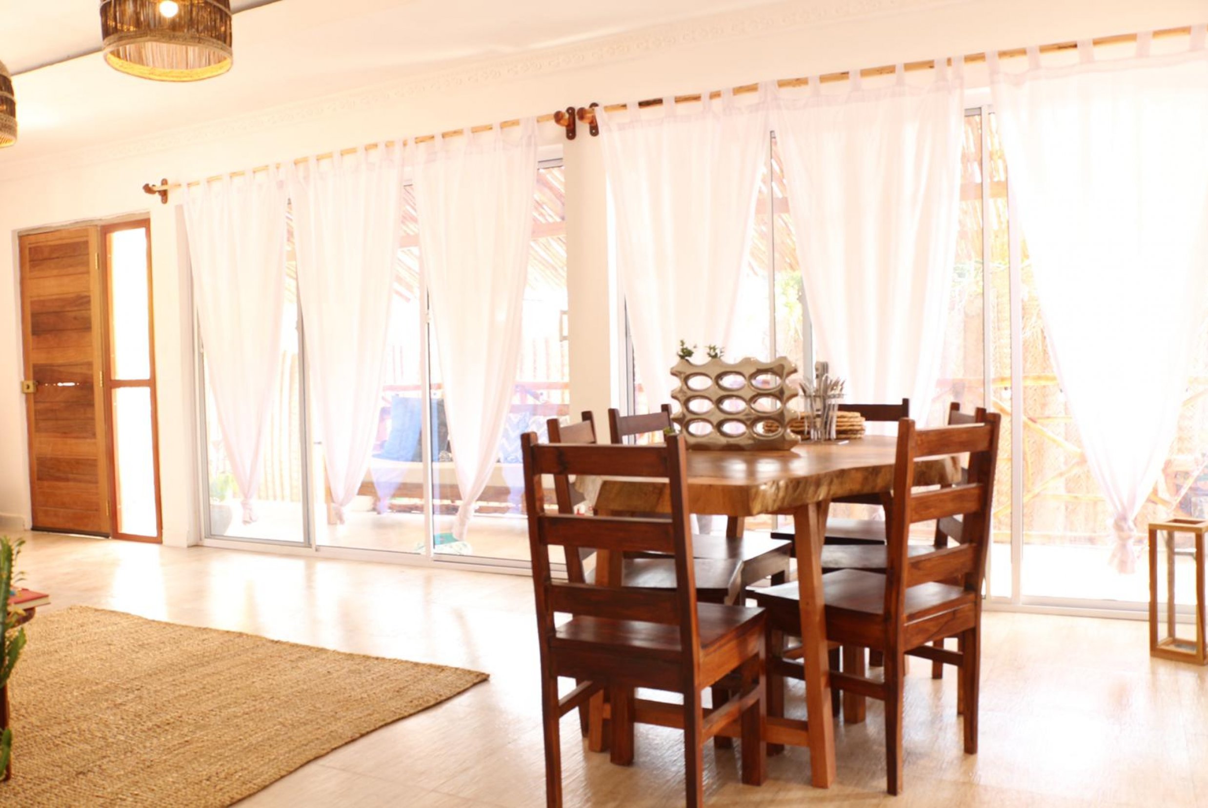 This two bedroom villa is available for rent and is located in Paje, Zanzibar just ten seconds from the beach. The villa is near the main road linking Jambiani and Bwejuu. In addition, the villa’s location means it is also near Paje’s famous attractions. These include B4Beach Club, The Nest, Mr. Kahawa, Mahali, Paje by Kite, Jozani Forest, the Village Market (a 24 hour Supermarket), Dr. Mehta’s Hospital and Paje International School. Furthermore, it is newly built and renovated house with all the amenities needed. Moreover, the two bedrooms are also en suite rooms. There is also a mid-level terrace that gives way to the swimming pool. Moreover, there is a spacious backyard connecting to the beach.